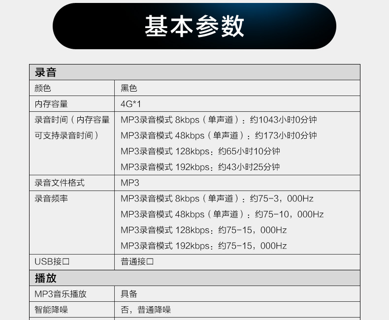 现代HYM-4058录音笔16G专业微型远距离降噪充电高清锖色